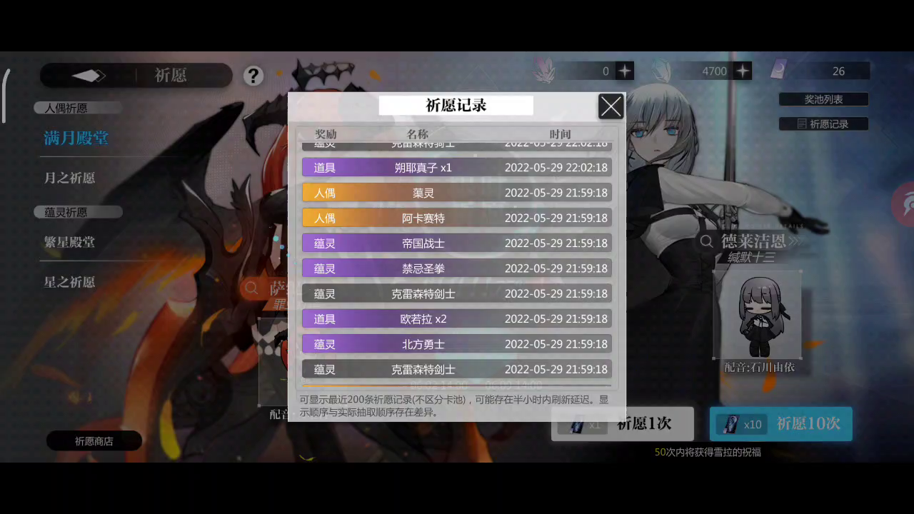 两个星期前雪儿池子入坑,一个十连就来了,后面抽冰池雪儿三杀😭。不过有一说一,三次连金还是很开心