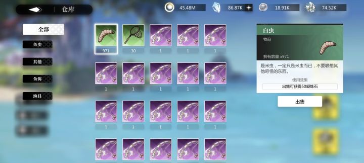 终于钓鱼毕业了,太艰难了。背包里还有一堆鱼竿,这下用不掉了。