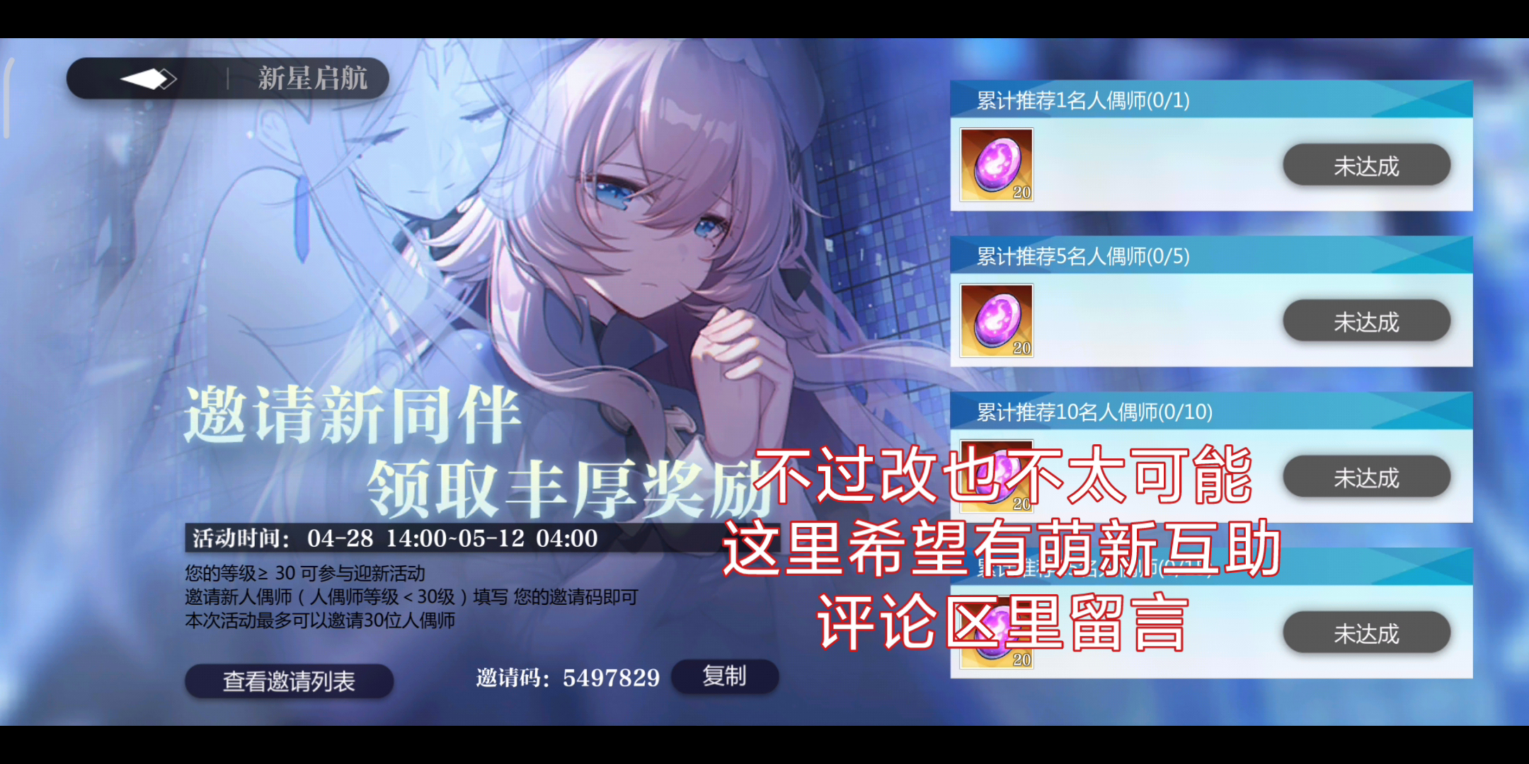 灵魂潮汐限时萌新邀请活动互助 这个真的有人吗?
