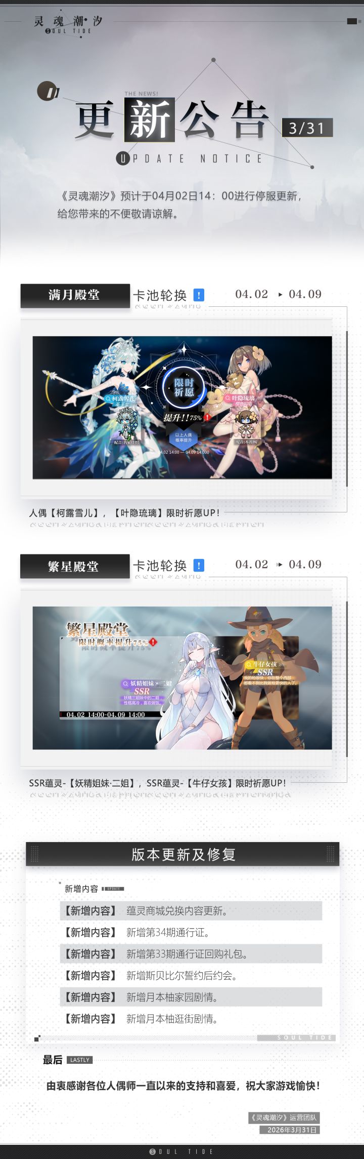 《灵魂潮汐》4月2日停机维护公告