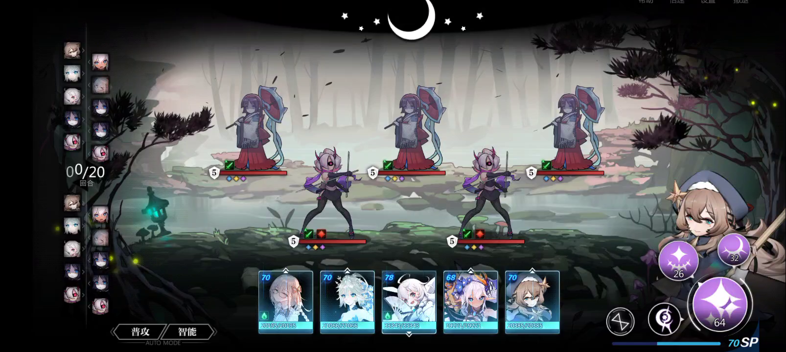 莉天帝还是强啊,低配需要凹一下后排三个伞女的伤害打到谁身上,总之就是别被集火秒了,四回合打不死基本可以直接放弃,那个伤害属实站不住