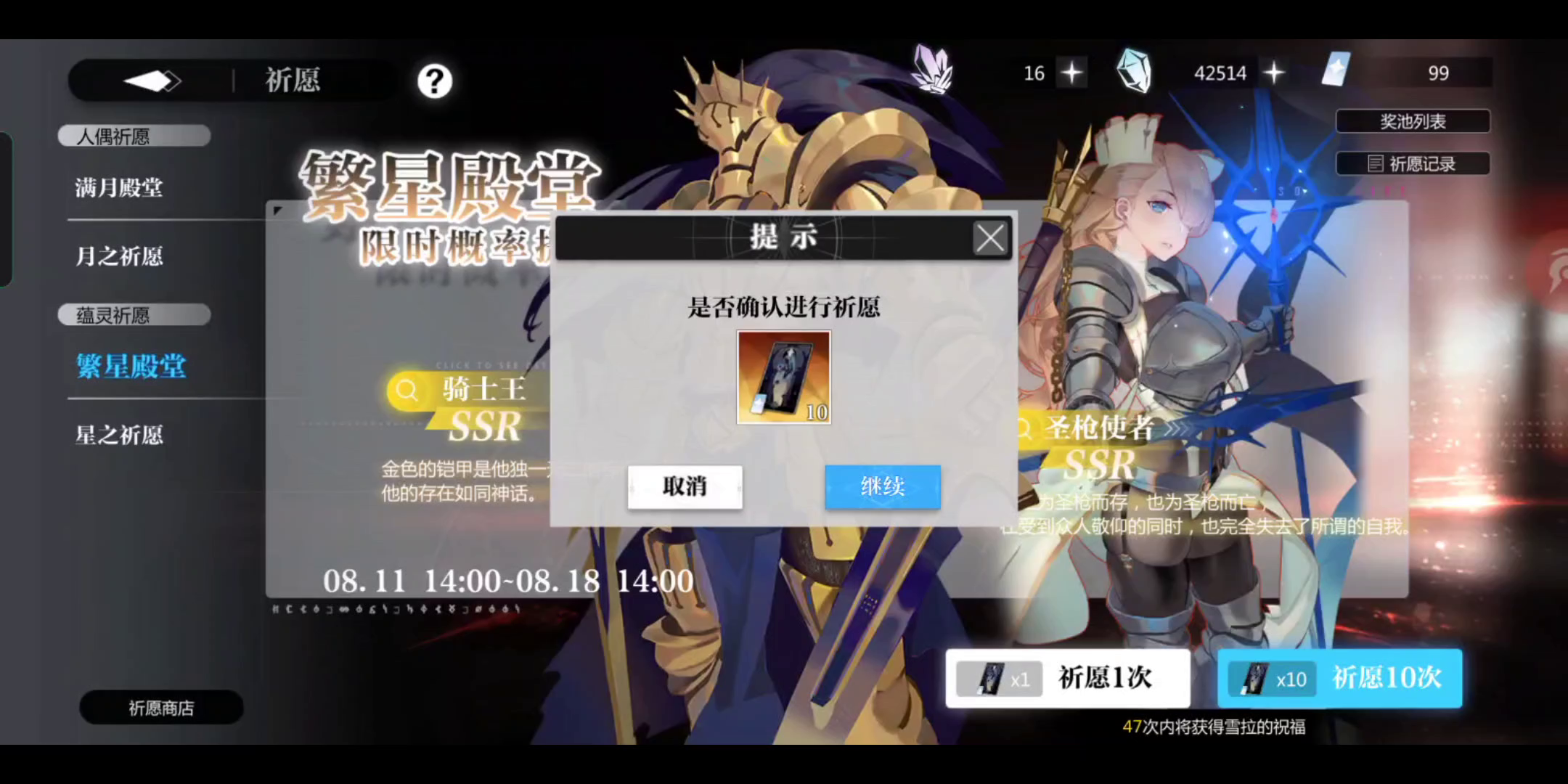 圣枪up抽卡,池子依旧真实