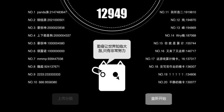 前几个位子都被别人开挂占了,真的,很让人不爽。如果是靠自己玩到那么高的分当我没说,不是我酸哈,我是真的觉得这很过分。虽然是个小游戏但是也不带这样欺负的吧