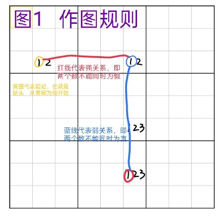 基础篇中已经介绍了基础的两种推数逻辑,摒除/唯余,还学习了区块/数组,在我个人看来,数组本质上也是排除的一种,那基础再进一步,就需要接触到链的概念,本篇章同样会一个个介绍进阶技巧的逻辑,那么同样先介绍一下名词以及需要了解到的东西。 ------------------------------ 共同作用格:在结构/逻辑中两个关键格子或者关键区域共同影响到的格子。 强关系:两个数不能同时为假。 弱关系