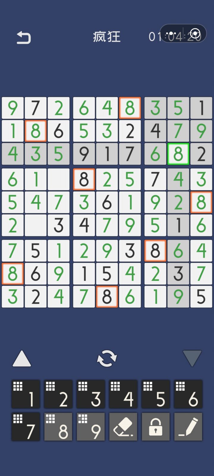 第一次玩,也是容易里面的第一局,就给我上演bug,我第一次碰到,我还不信邪,结果等我一个一个把剩下的数输入一遍,发现是个bug