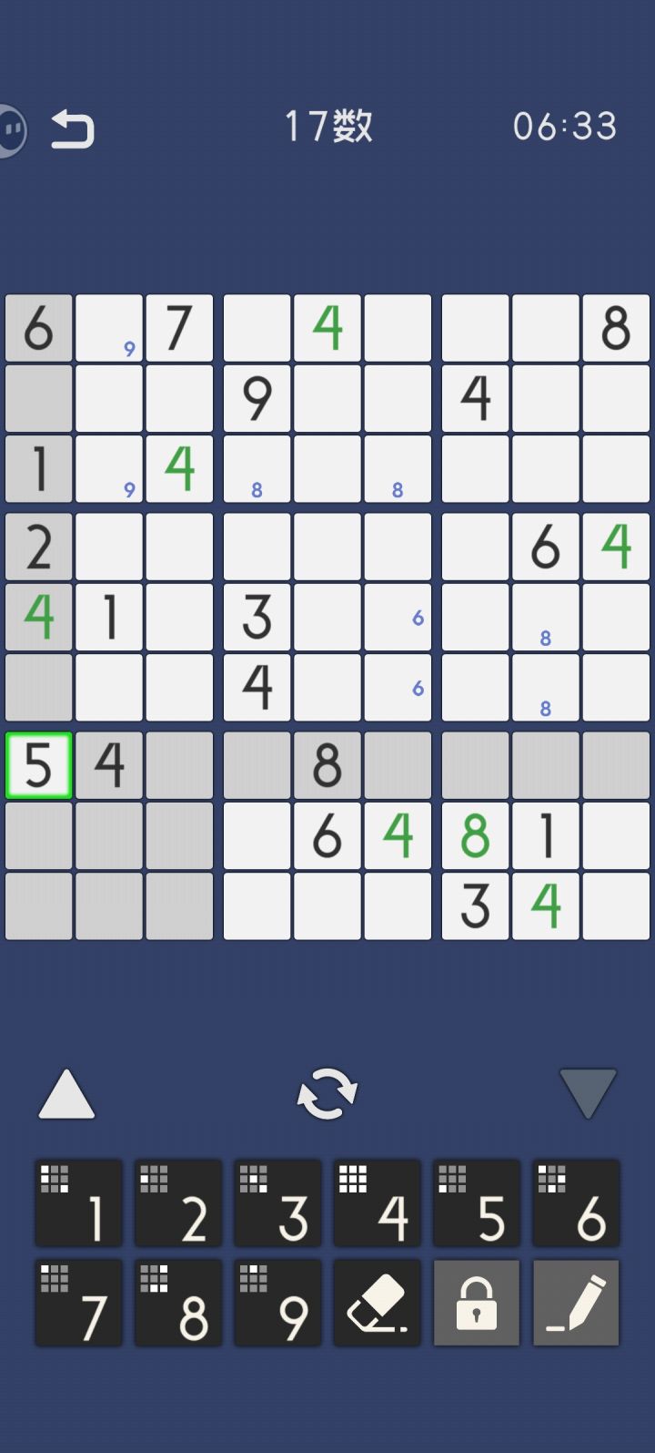 如果你之前把一个格放好几个数字,然后再和同行同列,只要选到那个数字后,它就会被消掉,但是我是从一到九直接快速选择的习惯,这样一搞之前弄的全都消失了😅