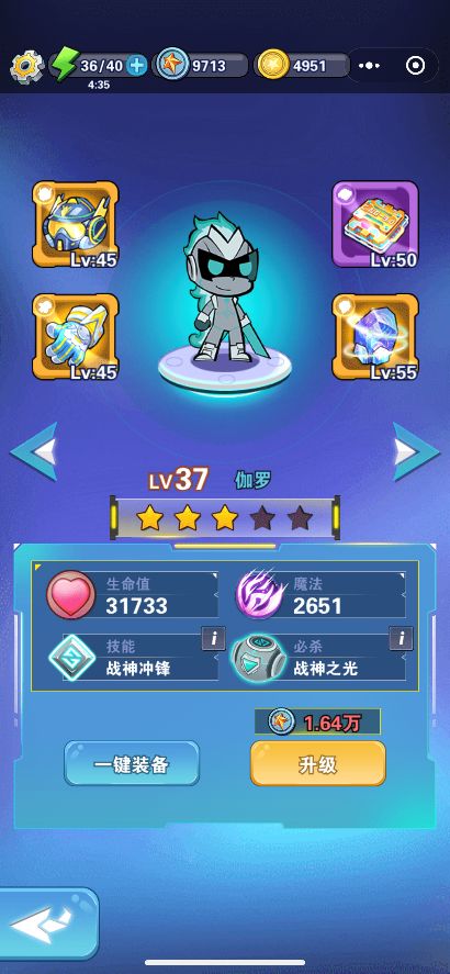 《开心超人》是一款创新的消除游戏。游戏通过三消来控制超人与怪物对战。今天小编就来为大家介绍一下新英雄:伽罗。伽罗作为《开心超人》的主角之一,拥有超高人气。伽罗,对应灰色棋子,代表忠诚,是小心超人最好的朋友。作为游戏中的付费英雄,游戏为伽罗精心设计了两个技能,战神冲锋:激活1行棋子,击中怪物的话,使怪物的被动技能无效,战神之光:将场上伽罗的棋子,随机变成另一个颜色,并且增强由此带来的消除效果。