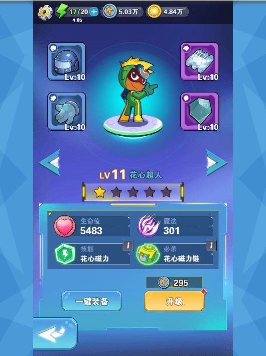 《开心超人》是一款创新的消除游戏。游戏通过三消来控制超人与怪物对战。看过原作的玩家都知道,作为主角的五位小超人,正义的使者,为了保护星星球,与邪恶势力斗智斗勇。今天小编就来给大家介绍一下,主角之一:花心超人。 花心超人,对应绿色棋子,代表自信。游戏为花心设计了两个技能。花心磁力:对敌人发射磁力造成伤害,同时使其行动步数增加2。花心磁力链:对所有敌人发射一道闪电,并且进入20秒的闪电模式,在闪电模