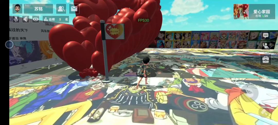 女娲创造者老苏的作品之海贼王漫画展,连阁楼里都布满了漫画,在他家带一好友吃吃喝喝,还并肩躺他家床上休息,休息好继续爬,高处的灯笼是可以开关的,天空的颜色是可以任意切换的~有趣的“心肝大道"不容错过。