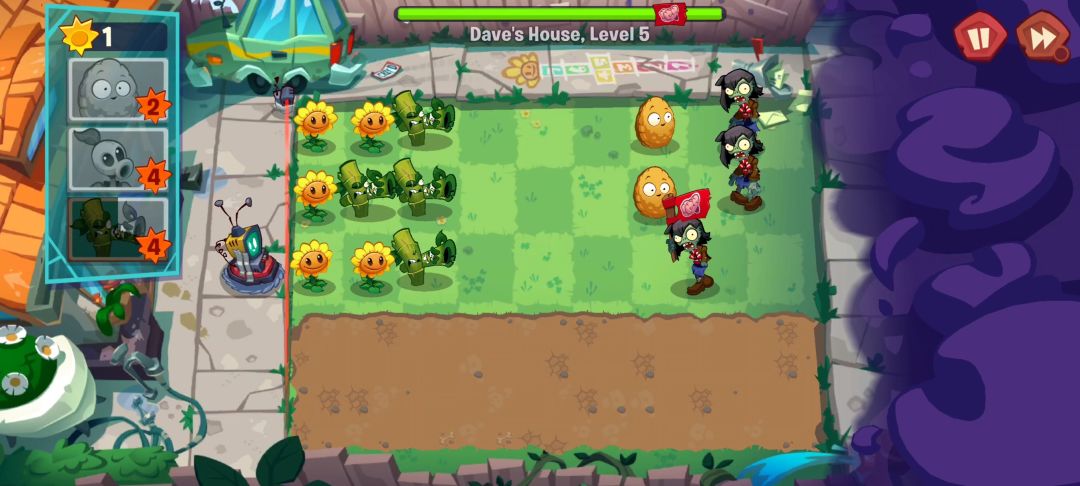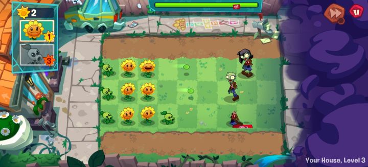 谷歌商店可以下载,目前只有五十关,这五十关不太像主线,倒像是挑战,因为不能自选植物,只能锁定的那几个打,变化也有,豌豆伤害变低了,卷心菜伤害变高了,但阳光是4,豌豆是3,路障血量降低了三下豌豆吧,大概,铁桶血量大幅降低,大概比原来低一个普通僵尸差的血量🐰