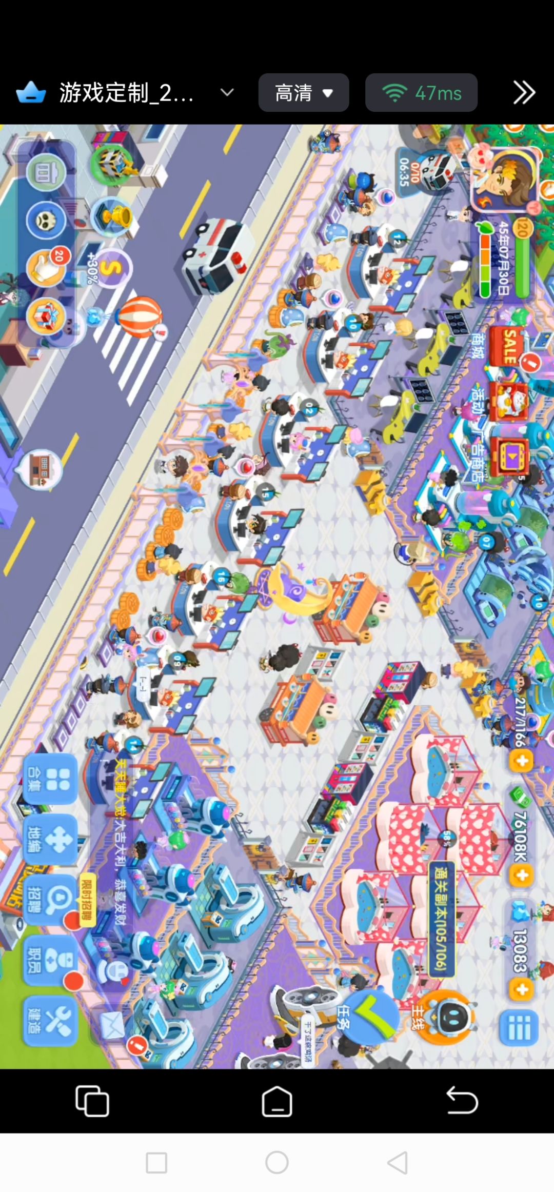 医院本体中心部分全开即可适配,除了迷路属性没法子其余病人不会乱跑,实测导诊不堵,大门只能开两个,多开会导致病人堆积,前期不用电脑房(替换成浴室),发奖金给职员