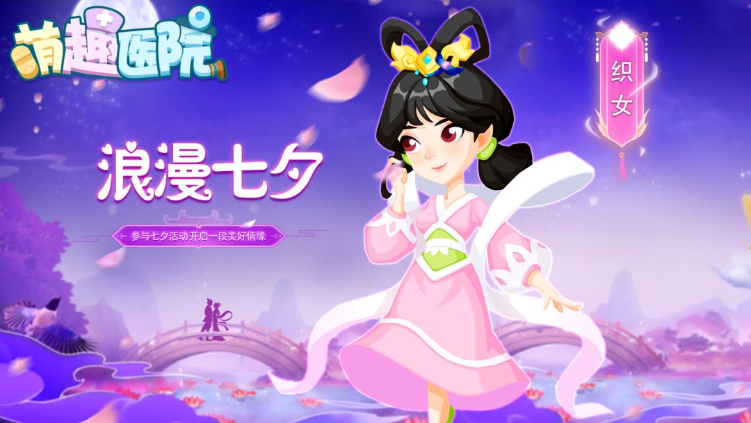 各位亲爱的院长大人: 大家好!感谢院长们一直以来对《萌趣医院》的支持和关注。 脉脉相思,缘定七夕。节日期间,萌趣医院为各位院长准备丰富的节日活动,限定皮肤、限定职员和限定装饰物等超多好物等你来拿,更多精彩活动等你发现! 活动时间:2021年8月13日至19日 【活动一】 七夕皮肤特卖:七夕情缘浪漫主题皮肤限时上架,超10款医院皮肤进行特惠打折 【活动二】 限时招募:七夕限定超级精英(织女)up,只