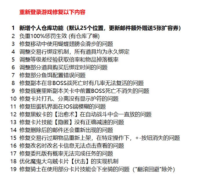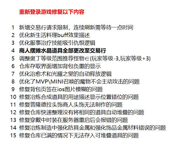 今天的更新主要是尝试解决用脚本在交易行扫货的问题。交易行的问题首先是价格偏离实际价值,同时也脱离供需关系,所以今天更新后会调整交易行的价格浮动机制。超市中售价正常的商品,是不会被抢购的,只有搞活动促销才会排队抢购。过低的商品价格使得工具泛滥,同时也抑制了背包中有存货用户上架的欲望。希望更新后经过1-2天的价格波动,道具的价格会回到一个相对合理的区间。如果以上操作无法解决问题,再考虑加一些验证码或者