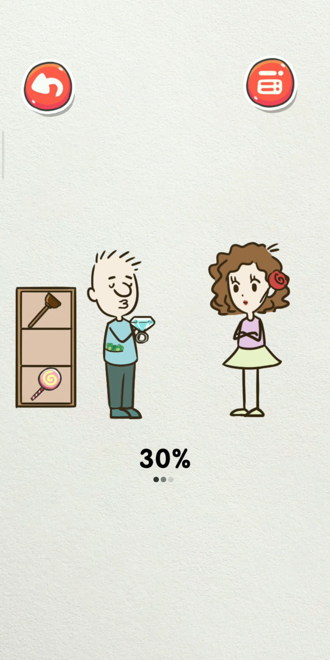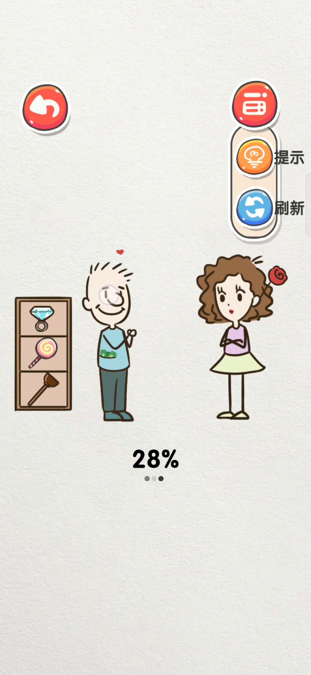 看攻略说是把花给女孩我就一直移 然后移到耳朵上时下不来了 但也没通关 然后男孩手上也放不了东西了 😂