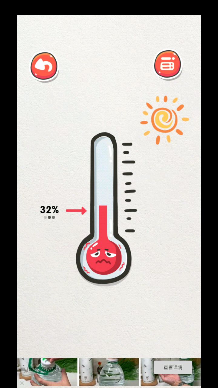 一开始我以为是照太阳,后来随便划了一下屏幕。只要反复左右滑动温度计就能让温度计生气(升温)了。