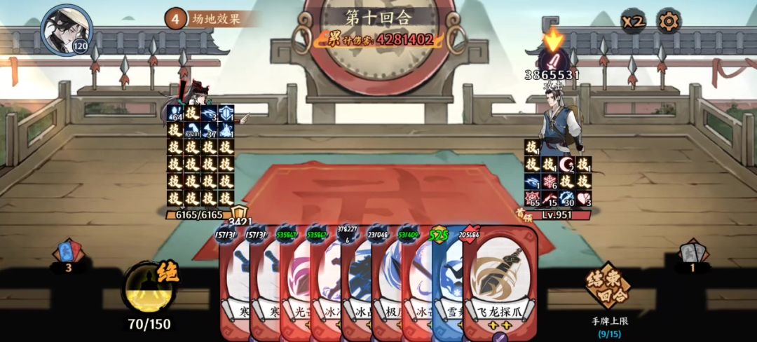 小boss没有无敌,可以基本可以一回合结束。大boss有无敌只能两回合。buff不用多,紫炎那一个就够了。 打法就是不断过牌(所以带螺旋和阴阳掌比,星级差不多就行了),只要摸到命丧黄泉、赤炼鞋、冥界幻影和猎魂掌就够了,大概率是一回合可以全摸到,摸不到也没事,结束就好了狗头[表情_狗头] 。出牌顺序刚好就是这样,大小boss可以放一下暗影拳,大boss根本不用,动画还花时间,幽冥回响就会触发无敌,然