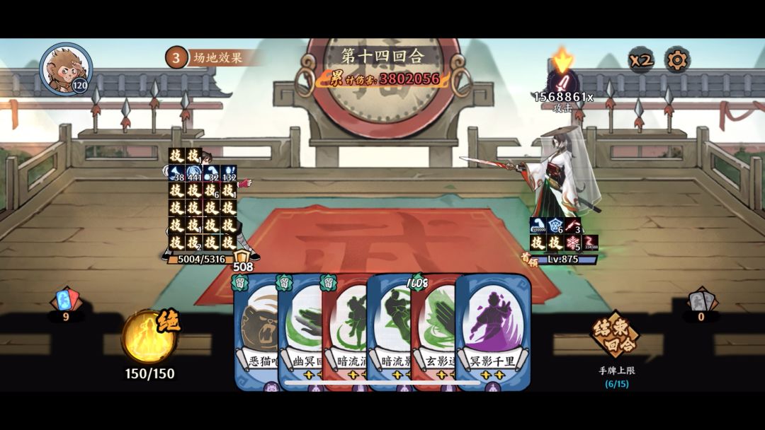 玄冥神掌平替阴阳掌前打这个天伶雪是800w出头,不过阴阳掌我是没舍得用果子改良,初始暗伤增幅是有差距的 狗头[表情_狗头]试一下纯北冥的强度,卡组还没完全调好,北冥神掌完全可以不带幽冥回响,换张毒卡能叠更高,玄冥神掌的暗流影袭本来想留一次卡牌库,没想到boss不耐揍,下次可以启动前放完,还能多一万多的毒,估计凹一下能到1100w吃瓜[表情_吃瓜]。感谢新红玄冥神掌,大大的加强。2星蜚,三级古玩,没
