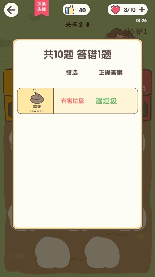 我觉得应该弄一个垃圾百科资料,可以在上面写上什么是什么垃圾,不至于打游戏时一无所知,也便于记忆,因为很多都是蒙的,不会记住太多,但先看一遍再打就容易记也加强通关概率。