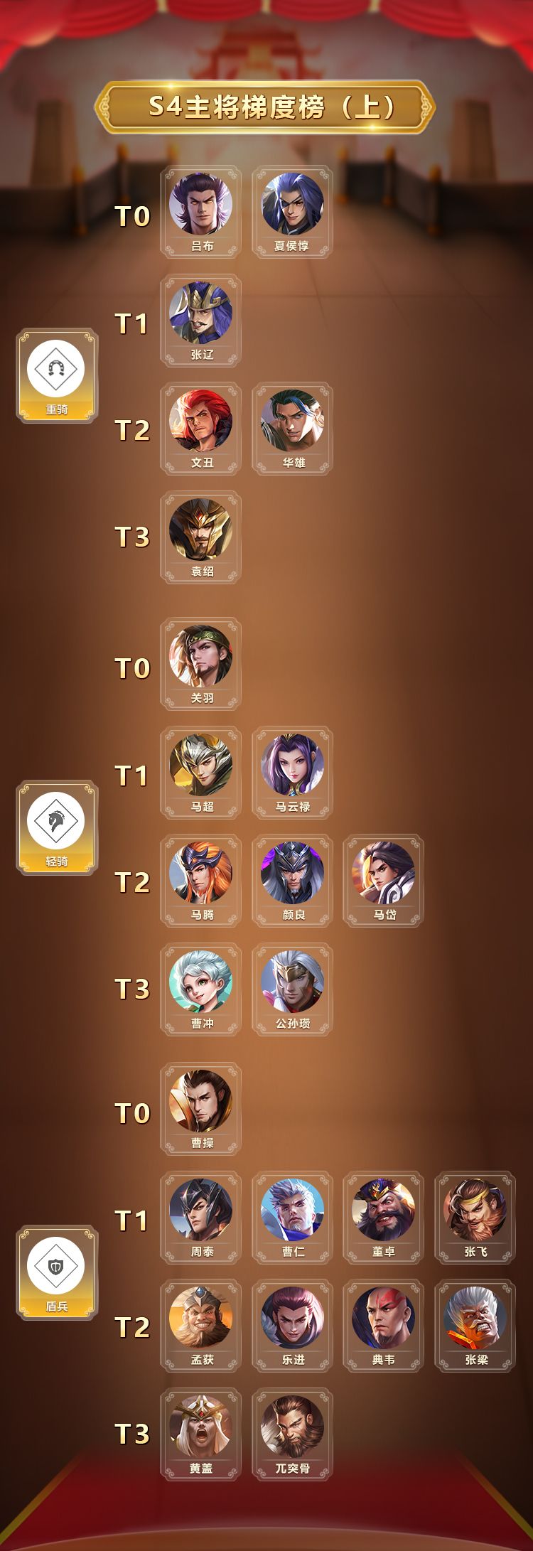 给大家来推荐一些适合推主线的武将~本攻略适合白嫖党观看,氪金党请注意避雷哦! 九州关卡(包括主线、战役)阵容多变,有的阵容有明显的破绽,轻骑绕后就能轻松取胜;有的阵容攻击极强,军师周瑜带着一众弓将火烧四方,必须有强力前排防守;有的阵容则是善于防守,一派盾将不易突破,必须重骑破阵。所以,我们的阵容也需要足够全面,前排要够多够硬,冲阵也要够快够猛! 而在六大兵种中,防御最强当属盾将,攻击最强、能破开敌