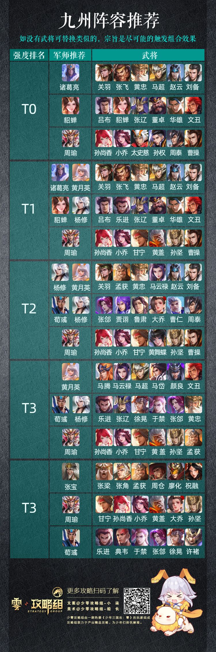 阅读说明: * 该攻略仅代表作者个人对【弓吕布武将】阵容搭配思路推荐,不代表官方 * 攻略仅供参考和提供搭配思路,请结合个人实际情况搭配 * 图大,可保存至手机放大观看 感谢观看,如果少年们对【弓吕布武将】阵容搭配上有其他的灵感,欢迎交流讨论哦~
