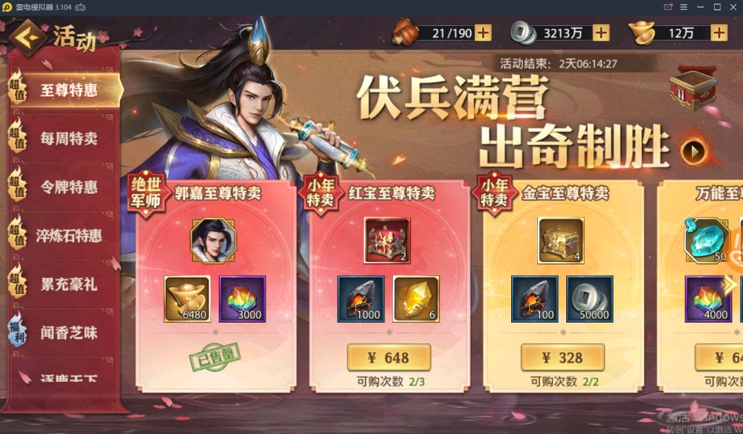 至尊特惠值买否? ——虚情出品 小年将至,少三零也为少年们准备了丰厚的小年特惠,和以往的礼包相比,本期的礼包可以说是性价比绝佳,那么本期攻略就由虚情为大家带来全新礼包的性价比对比分析,让少年们观火最优解! 首先来浏览一下礼包种类,一共有六种礼包,按道具类别分的话一共有四种,军师,宝物,万能石还有点将令。 先说一下点将特卖,198只给10个点将令还有5个天工令和1980元宝,由于点将的不稳定性还有寻