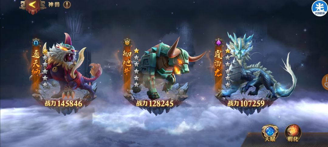 虚空衍兽魂,神兽震九霄! ——虚情出品 前几日少三零中出了一个全新的系统——神兽。神兽的降临再一次为阵容的可变性增添了一分乐趣,并且对少年们的战力也是一大提升。本期攻略虚情主要为大家带来各种神兽的作用还有一些养成方面的问题。让我们直接进入正题。 一.神兽名称 一共有三种神兽类型,从左到右分别对应的是通天狮(重骑类型),彻地牛(盾兵类型),覆海龙(谋士类型)。所有神兽都是要选定一个武将来继承属性,也