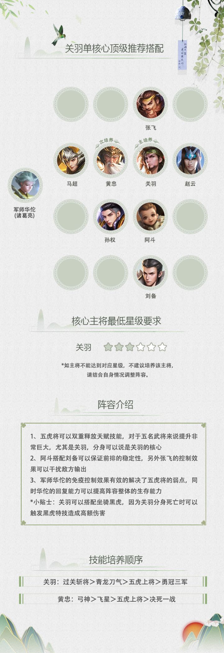 【关羽攻略】新区单核心推荐搭配