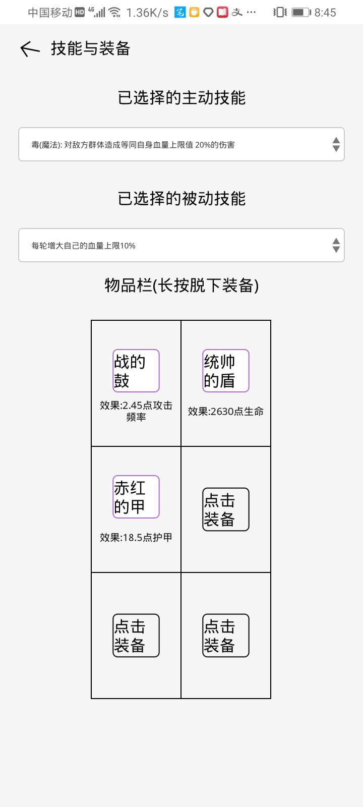 魔免的人,堆攻速,可以轻松堆到二三十,被动技能选择每次攻击回复2%血量即可。应该是bug,每次攻击会增加当前血量的2%,一回合能增加百分之六七十,而且无视上限。缺点是输出不够,容易打成膀胱局,但只要没被秒根本就是无敌的存在,这一把我血量都超上限了。