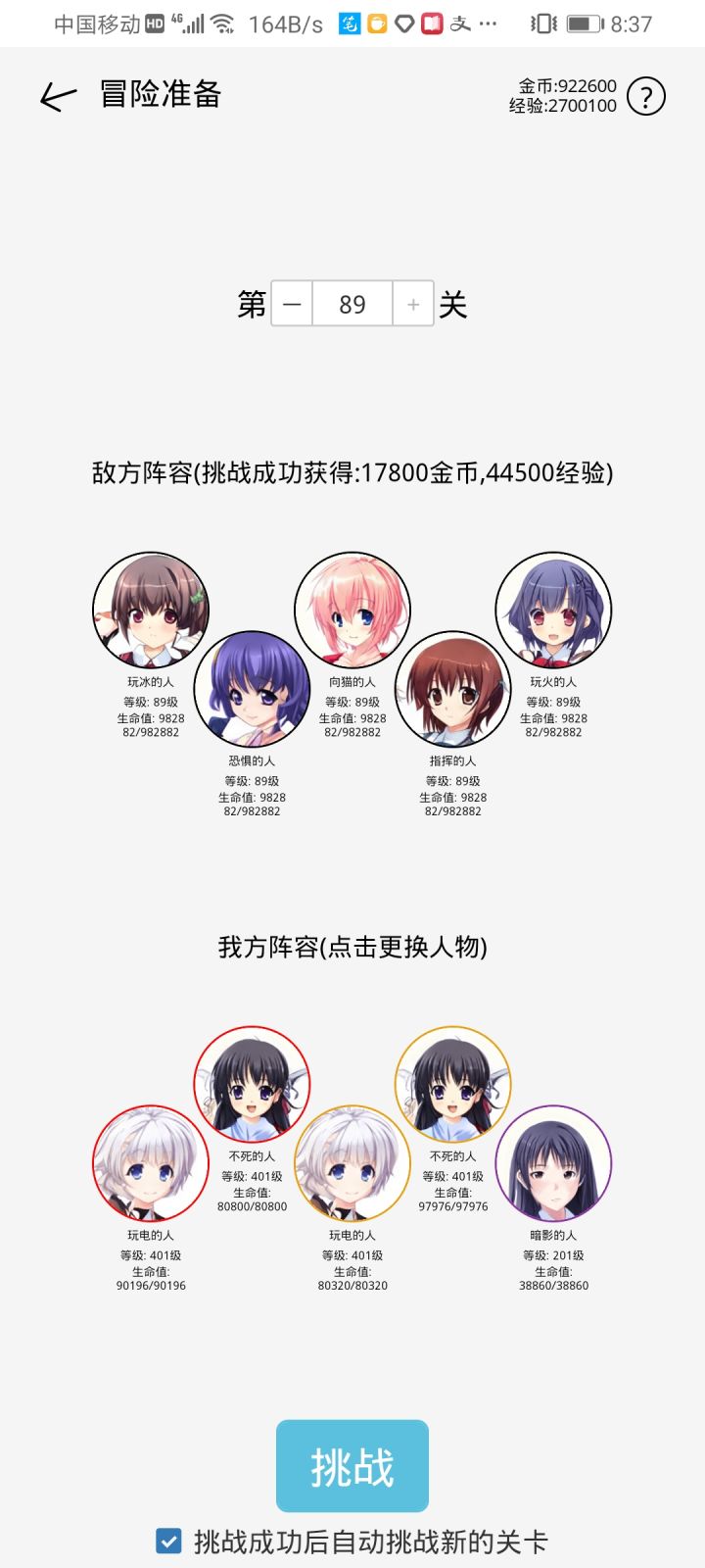 一个阵容能打70关左右,另一个打到89关,用电的人和暴躁的人,输出都挺高的,尤其是用电的人,还能疯狂控人,起初我以为是像猫的人控制的,后来发现,用电的人控制更好用些,暴躁的人配合暗影的人,只要暗影吧暴躁的血加上去,暴躁丢一个技能贼痛,不过后来发现暗影的人,奶量很迷,而且只有把暗影的人的技能调到用毒,才能回血,暗影波貌似不能加血有点懵。呃呃刚刚那个照片没放上