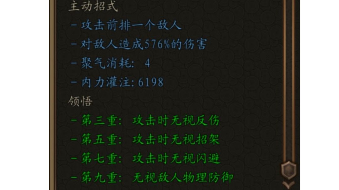 零氪微氪玩家建议,主修刀、剑、棍三选一就好,配合相应传说武件和相应功法好起来些,不然养不起。和尚和雪儿要一个就好,雪儿回血比和尚强(雪儿可以把疗伤直接换星光守护)(和尚的伤害高些,毕竟主修拳掌的)本体角色也是可以带其他角色技能的(其他角色一样可以带),除了特定技能比较难刷外。寒冰掌配合寒冰真劲,加满冰冻也不是很好,不建议走这个路线,不如:狮吼功等直接控制的技能好用。伏地绝+狂风可以把招架加到70%