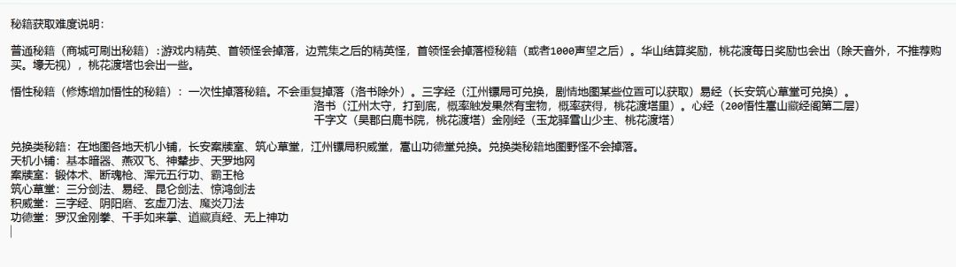 零氪新人最优开局,挂机江州驿第一个剧情怪,挂出同归剑法两本先不学(学了之后残章掉落清单等于多了一个,据说不利于掉整本秘籍,同归剑法是蓝色秘籍每次分解是三十残章),多余的同归剑法都分解成残章待用,一直挂够两人能够修至七重的残章,2*83=166个。同归剑法七重效果消耗50%血量换取同等伤害。这样猪脚和明月七重的同归剑法基本能保证输出,剩下的就是堆血,满足命中和破招。 三重突破需三残章 四重突破需十残