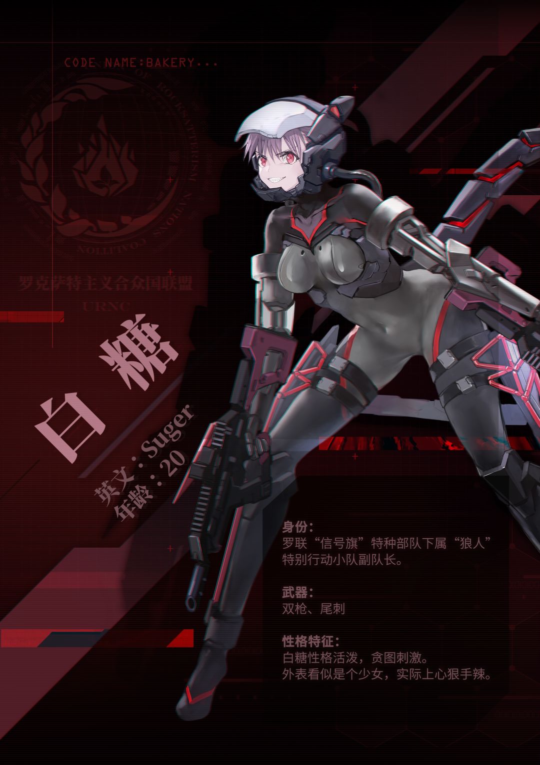 亲爱的特工们晚上好呀!《逆向坍塌:面包房行动》特别企划活动正在B站直播间902593进行中,大量全新机密作战情报正在解析中... 相信眼尖的特工们应该发现在刚才释出的全新PV动画中,那段精彩的打戏里出现了一个新面孔,那就是我们英姿飒爽的特种部队副队长白糖,她也是本次重制版新增加的重要角色呦。 ——白糖档案解析完毕,数据上传成功—— 特工们是不是被白糖可爱的鲨鱼齿和长长的机械尾巴吸引了呢。 不过大家