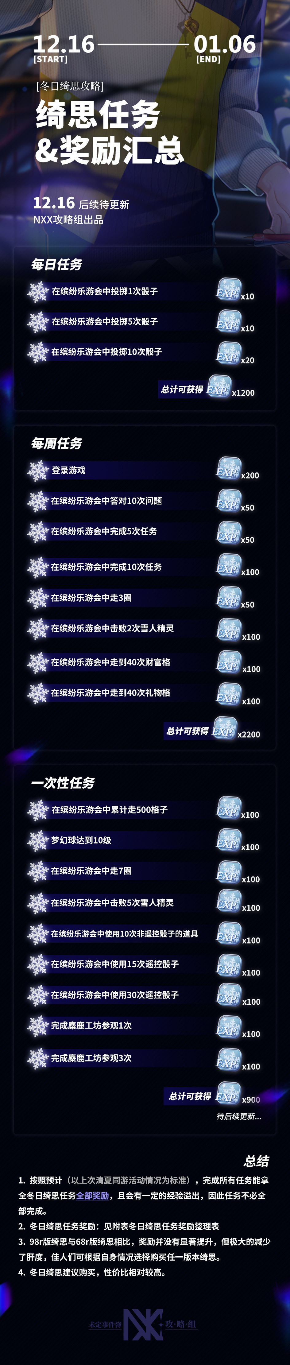 【冬日绮思活动任务及奖励汇总】(待更新) 如果你想在本次游玩中获得最佳的游戏体验!你应该知道这些!游玩时间如何更高效分配,游玩奖励如何快速获得! —来自乐游会资深玩家的总结手册