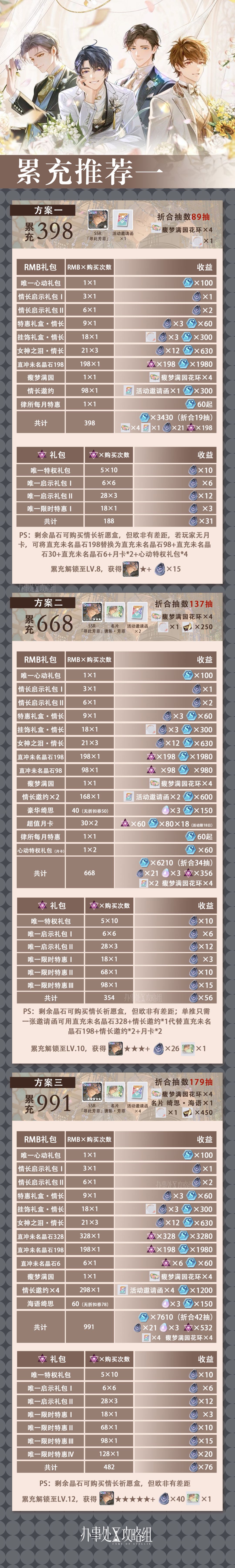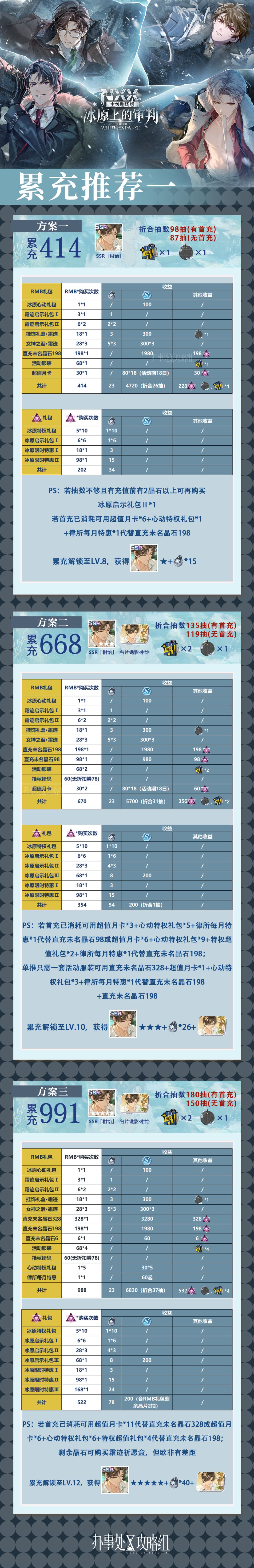 律师们期待已久的【消失的黄金-活动礼包收益】正式出炉啦~希望大家都能以最便宜的价格加入NXX冒(GONG)险(FEI)旅(LIAN)行(AI)团! 之后我们还会奉上【单推/多推氪金方案推荐】!