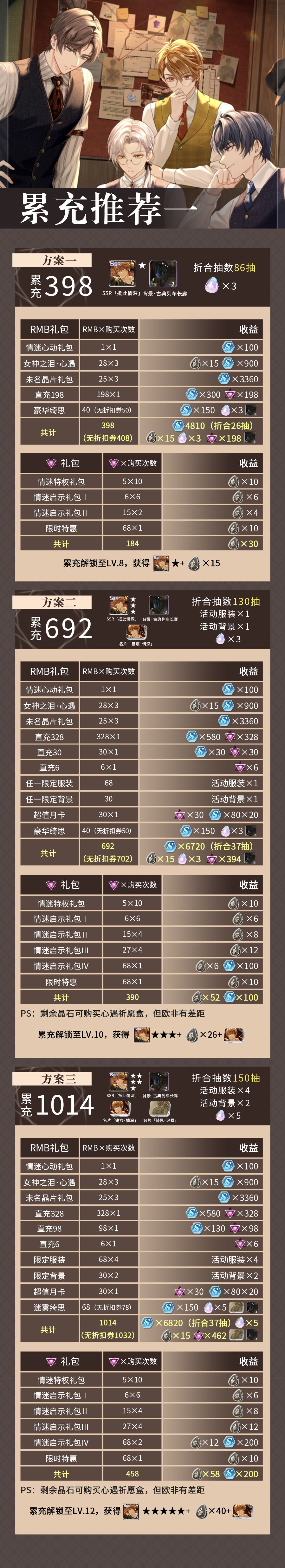 来魔法学院学魔法之前,一定要准备好充足的晶石,它们的作用包括但不限于:上课,做实验,买零食,装饰品……以及最重要的,在魔药炼制失败后能用做货币,好让发廊把爆炸头修复回常规发型。 不过说真的,老未,能不能让爆炸头常驻啊。 p3为活动礼包性价比 #未定事件簿 #少年如你之心动魔咒 #夏彦 #左然 #莫弈 #陆景和