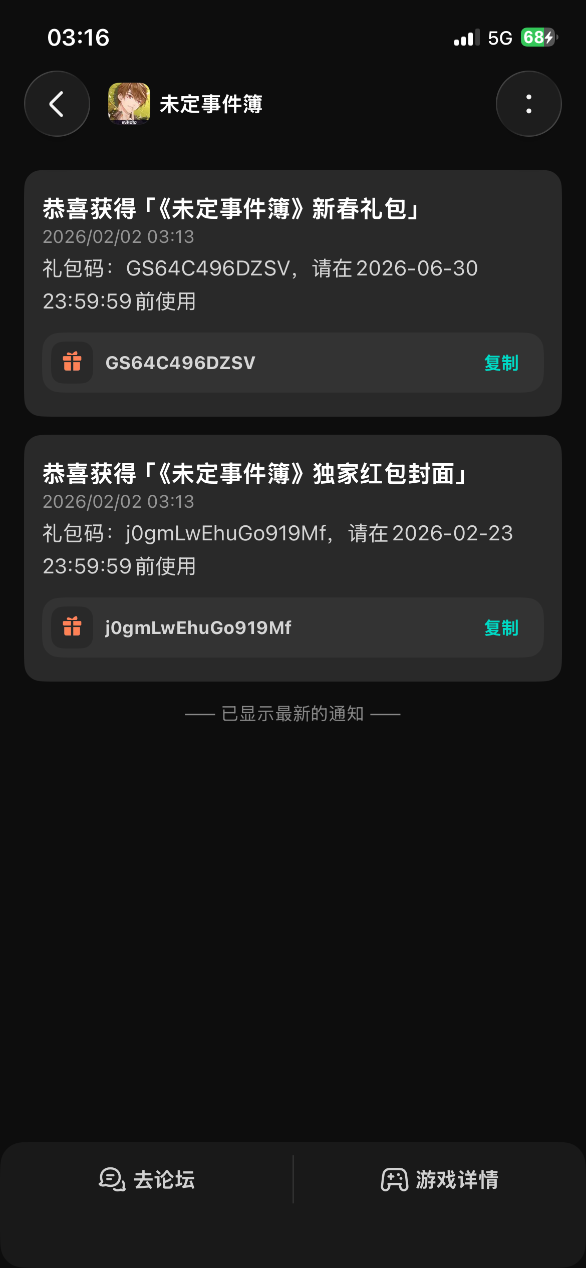 亲爱的律师~新年好!新岁将至,年味渐浓,为大家准备的TapTap新春福利“马上”送达~《未定事件簿》2026新春限定红包封面正在TapTap独家派送中!领红包封面,接新年好运~和《未定事件簿》一起共庆新春吧~ 活动时间:1月30日10:00-2月23日23:59领取方式:点击前往,每日签到即可兑换《未定事件簿》红包封面~还有礼包、周边福利掉落噢! ✨特别福利✨在评论区留下你的新春愿