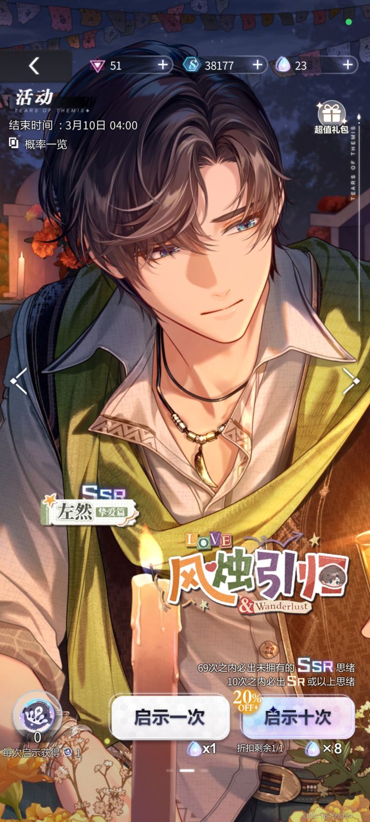 烛影浮波,思忆涓涓。✨「恋时旅纪·左然篇」限时活动开放▶活动时间:2026年3月3日11:00-3月10日04:00活动期间,律师将与左然继续墨里奇的旅行,在当地最大的手工集市体验“盲袋互换”,收获惊喜与祝福。完成活动任务可获得活动限定徽章【乐在欢庆】、【未名晶片】等奖励✨「祈光光标礼包」限时上架▶活动时间:2026年3月3日11:00-3月10日04:00活动期间,「祈光光标」礼包限