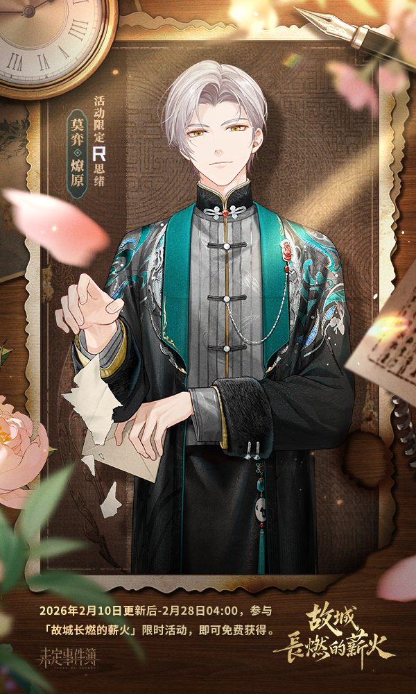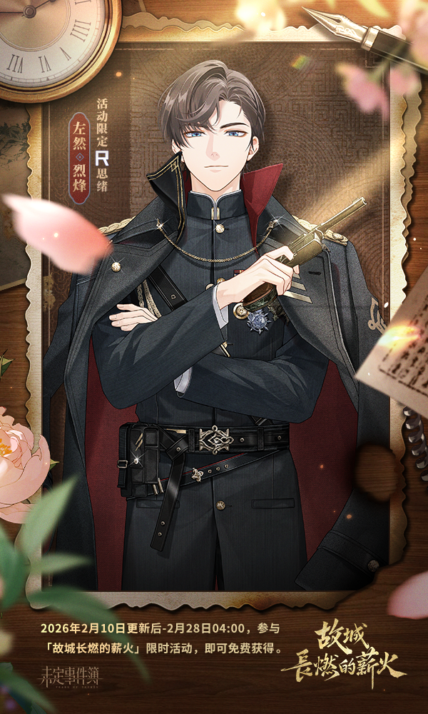 山海铸形,敢求时岁平。 2月10日更新后,大型新春活动「故城长燃的薪火」即将开启! 算尽机关险,袖藏百尺簧,少年奇局挣生死,星斗局终见朝色。 秉烛镇永夜,霜刃试锋芒,悬镜廿载朔风过,双肩落尽万家光。 浮槎远梦客,踏浪渡重洋,惊鸿回眸烟波处,醒拾故梦入行囊。 焚香辨青史,负雪立穹苍,照夜忽闻惊堂木,自开天地一痕霜。 且看,长夜终有尽,千薪续晓光。不辞灯下守,照彻未名城。 ◆视频为开发中画面,实际效果