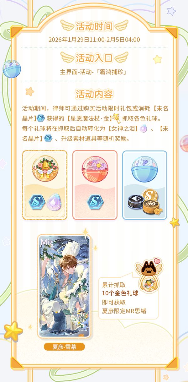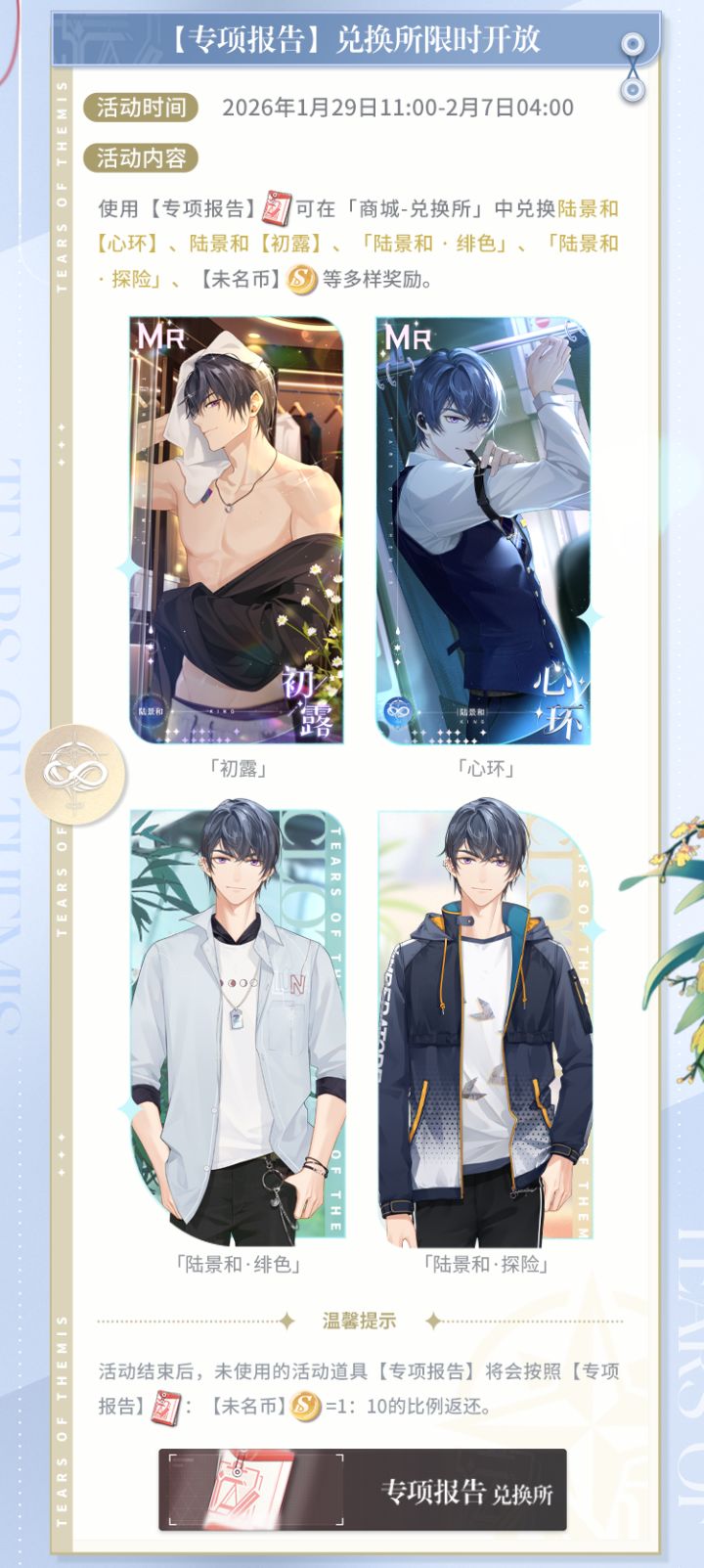 夜尽放明,终迎白昼。 1月13日,主线第十八章《行至黎明(上)》正式开启! 在正义失序的囚笼,于彻底迷失的深渊…… 总会有人以身为芯,燃尽长夜。 天将破晓,破晓的,不止是黎明。 ※夏彦SR【心玥】思绪残影将于主线第十八章(下)异常关卡开放获取