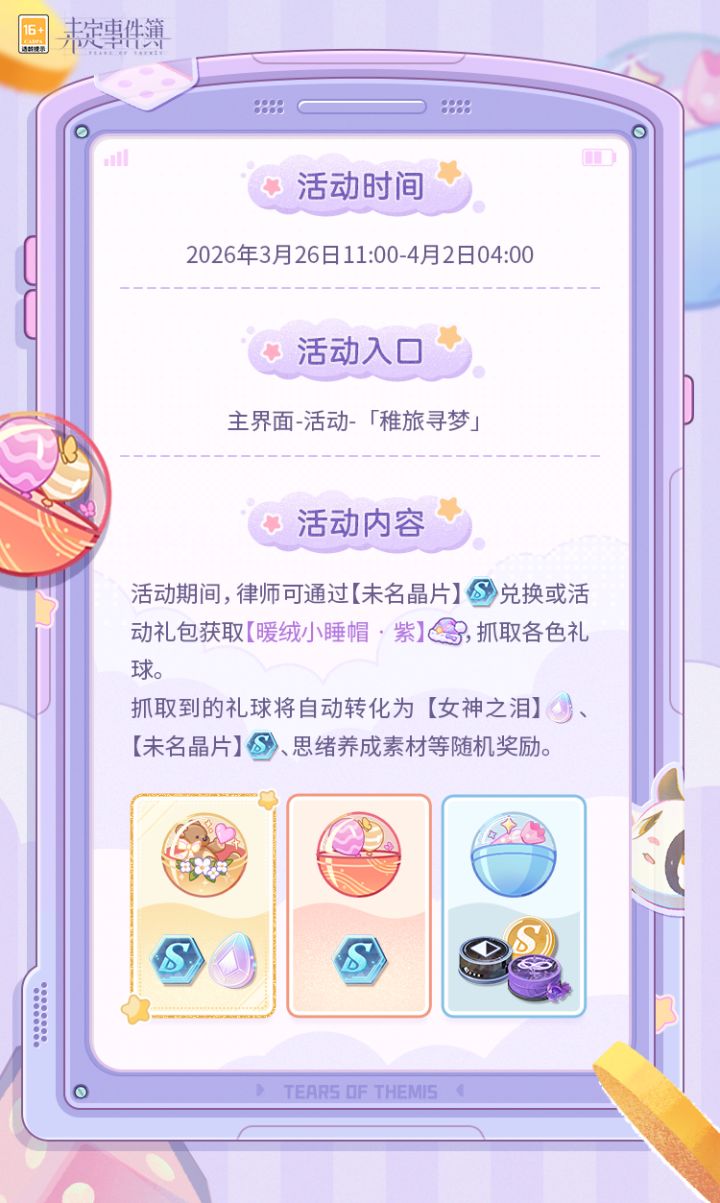 山海铸形,敢求时岁平。 2月10日更新后,大型新春活动「故城长燃的薪火」即将开启! 算尽机关险,袖藏百尺簧,少年奇局挣生死,星斗局终见朝色。 秉烛镇永夜,霜刃试锋芒,悬镜廿载朔风过,双肩落尽万家光。 浮槎远梦客,踏浪渡重洋,惊鸿回眸烟波处,醒拾故梦入行囊。 焚香辨青史,负雪立穹苍,照夜忽闻惊堂木,自开天地一痕霜。 且看,长夜终有尽,千薪续晓光。不辞灯下守,照彻未名城。 ◆视频为开发中画面,实际效果