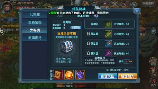 在《幻域战魂》的世界中,不仅只存在着战斗与拼杀,正所谓劳逸结合,适时的休闲也别有一番风味哦。小编这次给大家推荐的奥森宝图玩法,绝对能征服各位冒险家的心,休闲成长两不误,一起来了解一下吧!奥森宝图玩法与其它副本的最大区别在于,它是随机性的,需要使用藏宝图才有概率触发。另外,奥森宝图玩法是可以组队挑战的,而且队友还不用消耗藏宝图,虽然挑战次数是无限的,但每挑战成功一次,会有一小时的等待时间,挑战BO