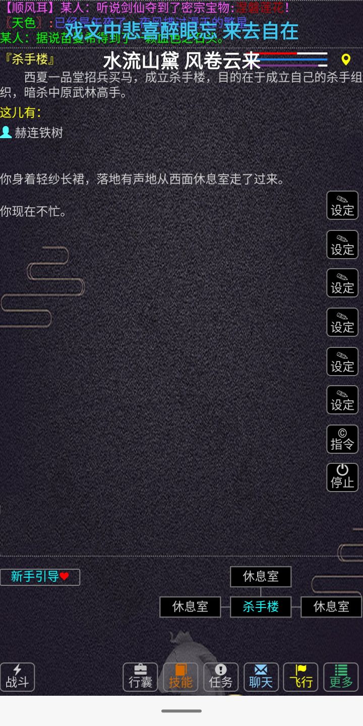 序本篇适合玩过mud的玩家, 零基础的朋友见谅.开局;1. 新人领礼物. 群里的<<新人发展指南>>等文中有提.2. 门派和种族选择. 建议选择自己喜欢的门派. 不过这里初期门派强弱差距还是比较大. 这里不做推荐, 实在想了解的群里问吧. 后面判师,出师,转世都可以换门派.属性:1. 先天属性都一样,不用选号. 客栈附近有天赋丹只能调整一次天赋. 取经后客栈附近有领奖励全天赋+22.