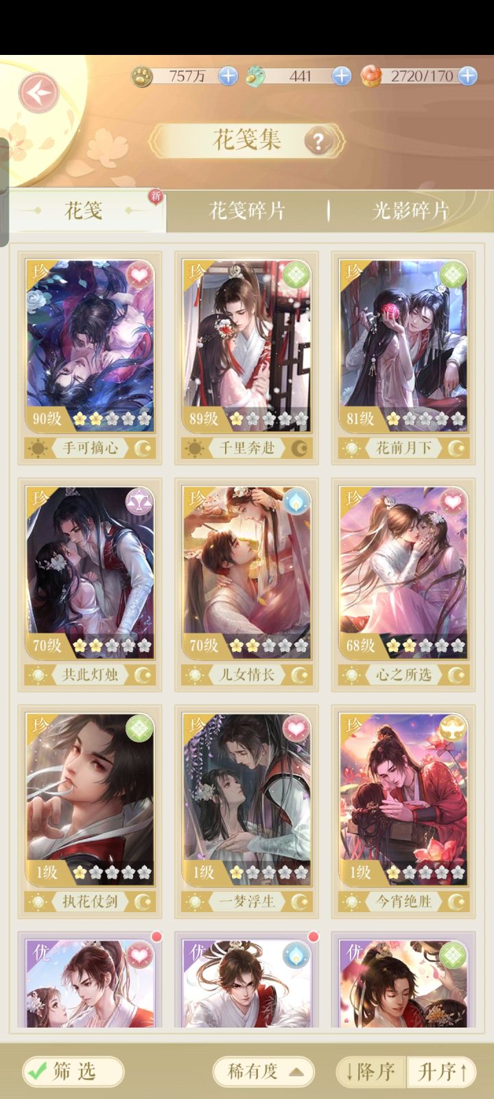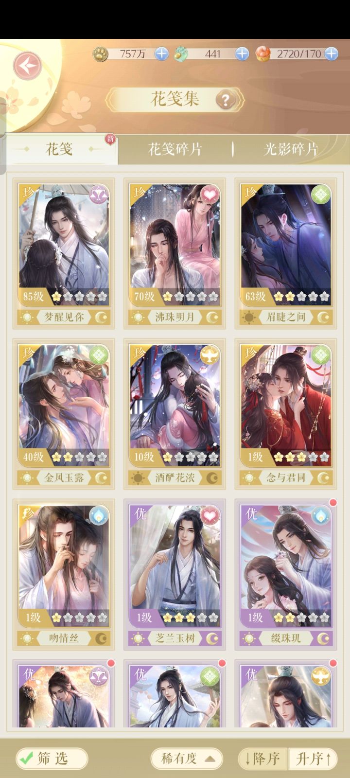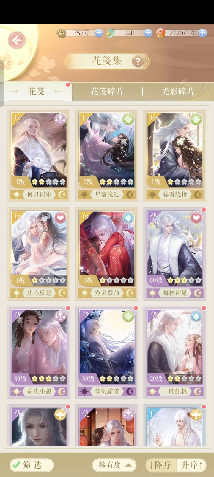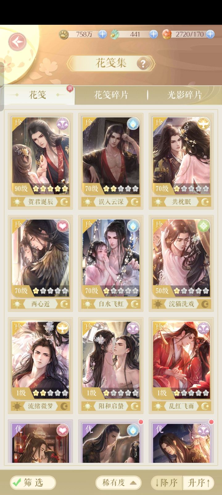 陪猫猫走了这么久的路,也到了分别的时候,特此开个纪念帖留存一下我与猫猫的回忆。本帖需知:1.为个人所有已拥有珍品卡与部分优品卡,良卡的卡面、剧情记录,记录不完全。2.有角色名称及小名,代入感欠佳。3.设备问题可能会影响画质及流畅度,观感欠佳。4.好感剧情会全记录,但因好感差异,只能记录到当前好感所能开到的剧情,剧情记录不完全。4.上述问题都可以接受的话,欢迎各位小阁主和云知晏一起,陪猫