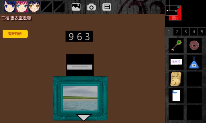 在体育器材室的墙上挂着一排可以移动的画像而一张少女的画像给了我们提示,人是站在食物链最顶端的存在,也许我们可以按照食物链来解开它果然,谜题是按照食物链的顺序来设计的