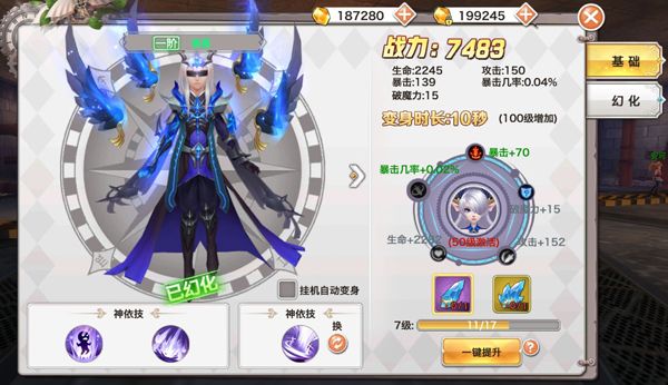 神依系统,在玩家达到60级的时候即可解锁。角色在战斗的时候点击“神依”变身按钮,即可瞬间变身神依状态,瞬间提升属性,并拥有全新震撼技能。 神依模式属性神依可以为角色属性提供生命、攻击、暴击、暴击率、破魔力。玩家可以通过使用神圣晶柱或者晶柱精华来提升神依等级,从而提升属性。当达到指定的等级之后,可以解锁新基础武魂形象或增加变身时长。技能搭配神依状态给玩家提供全新的技能搭配,神依技默认为神威加