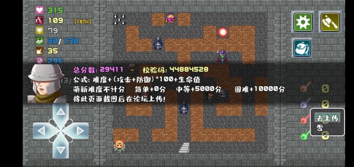 也把原本已经想好的建议也放到这里来说吧:按照作者的语风,作者应该是混魔塔圈的。虽然已经有人建议过了,我再次建议作者去玩玩魔塔吧的塔,尤其是精品区的那些来借鉴些经验。魔塔大学的专业大楼就是魔塔吧了,多去那跑跑,对于造塔水平提升总归有帮助的。很多玩家也发现了预计伤害并不准确的特点,我自己测试下来也有同感,希望作者能调整预计伤害的算法,更接近实际伤害数值。音乐方面,建议BGM的能再丰富一些,同时也建议增加关闭音乐音效的选项建议作者增加一些剧情元素,举个例子,假如说要渲染搞笑风格,可以在2层绕过绿史莱姆之后添加剧情,魔王发现绿史莱姆与主角串通而将其格杀,体现绿史莱姆好不容易保住的小命最终还是没保住的搞笑情节。建议添加怪物图鉴和楼层传送器,图鉴避免要刻意存档贴到怪身上才能看怪物属性、还有可能会点返回直接点到战斗键暴毙的尴尬,楼传避免满天跑地图尴尬(不过假如只是像现在这样十几层一个独立区域的话,考虑到血网的作用倒也可勉强接受,但是层数一旦多了跑地图就很累人了)。本人为什么称这部作品像是手机上的新玄机奇塔,就是因为和新玄机奇塔一样的确有乐趣,然而机关实在太多了。关于机关的建议:强烈建议调整暗墙,与普通墙形成色差。26F到28F里的机关,假如让我来造塔最多只会保留28F的,26F和27F的机关不会保留,这个大概可以作为一个尺度,大范围的机关最好不要和战斗区靠的很近,建议相互隔离开,而且机关层和战斗层的大概比率不要多于1:10。关于按键的建议:战斗键和技能键很近,容易误触,存读档按键没点好也会连带点到档位上(在电脑上用鼠标点起来不容易出错,但是手机上不能指望手指有那么精确到只点一下这种)。建议添加战斗中撤退键,避免遇到像没切装备就打击退者要打数分钟的尴尬,将来这样也可以避免战斗判定使得突击技能没能使用就被退出战斗的问题。建议添加返回按键,避免误触(虽然的确可以双指点击返回,但这容易点错,有时我只是想看看以前的存档而已,但是点到读档就很难返回。还有开始难度选择这里也没有返回选项)。存读档问题:档位上建议显示所在楼层,主角属性等,方便查找存档。建议添加翻页按键,手指对着屏幕点存读档翻页相当困难。有时存档会存不进(好像是概率事件)。有些怪物的贴图建议换换,先不说粉SLM和紫SLM色差不明显,双刀剑圣+0+1+2+3四种居然共用同一个贴图实在需要改改。自动寻路有时距离一远就会出错,不知道用的是不是RMMV自带的寻路,绕过障碍的性能堪忧,经常会撞墙无法寻路。还有自动寻路联合27层团团转陷阱坑人,强烈建议删除团团转陷阱。建议在属性栏里也添加所在楼层的显示。建议增加战斗过程的讲解,能让没玩过魔塔的新玩家能更好的理解战斗过程。难度分歧,在评测里也说过,感觉区别不明显,低难度的先期优势不太足,而且优势的持续性也不够,而且长期之后游戏的平衡性感觉可能也不太好掌控,计算下来萌新难度在第一阶段结束前可以比困难难度多近100%的攻防倍率。另外还有评测里面找到的几个BUG:自身属性和怪物属性里面的暴击闪避率真心觉得不正常,感觉数据肯定有问题(不仅仅是感觉怪物的暴击闪避率太高,还有就算是增加了暴击吸血率主角的数据里却依然不显示(所以绝对不仅仅是我自己脸黑))先拿盾却不能先装备石头人的特殊属性不显示8层骷髅王BOSS战的两个BUG怪物0血不死的BUG