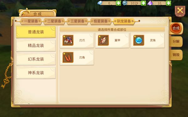 装备是每一位冒险者进行冒险必备的物品,没有了装备在冒险的旅途中可能就会变得寸步难行,但是各位冒险者你们曾想到过为自己的驯龙佩戴一套装备吗?驯龙装备是为了龙而专门制作的特殊装备,通过驯龙装备能够大幅提升龙的战力,从而让龙在战斗过程中为我们带来更多的战斗增幅!列车长今天为各位冒险者初步来介绍一下驯龙装备吧。驯龙装备主要分为四个部分,为刃爪、翼甲、灵珠和刃角四部分,而驯龙装备的品级又从“普通龙装”
