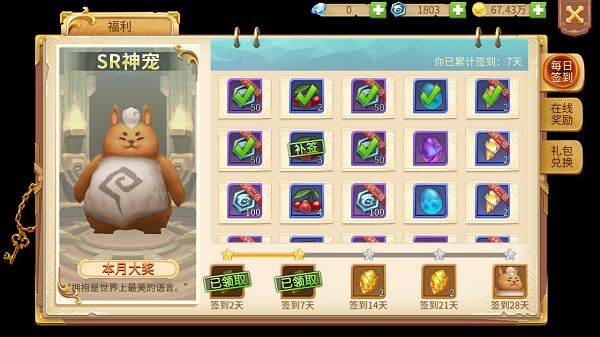 作为一个能够为各位冒险者带来诸多轻松和愉悦情绪的美丽世界。那么必不可少的福利环节,当然要在此时展现出来的了!本列车长今天就要给各位冒险者讲解大量的福利内容哦!千万不要错过下面的每一个介绍,一定要竖起耳朵来仔细听!签到系统是第一个进行介绍的系统,它的重复利用率高,奖励内容不错,从各种货币到各种高级材料,稀有道具和高级大奖,奖励内容之丰富,获取方法之便利,真的是放血福利呀。如果说前面的签到福利