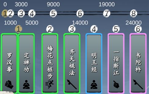 第一点:旅行江湖提升修炼境界的方法有几种,分为武学,心法,轻功,属性值,武功值,装备。其中的属性值和武功值可以通过主线,旅行,羁绊,打工获得。(打工仅能获得属性值不能获得武功值) 武学,心法,轻功需要修炼提升等级,当然也通过奇遇秘境等玩法也会给一些武学奥义精要用来提升等级 。装备可以通过送侠士礼物加好感度和秘境产出获得。 修炼境界:旅行江湖的修炼境界从低到高大致为九品到一品,先天,绝顶,绝世,宗师