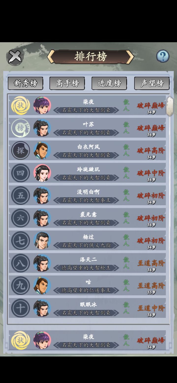 第一点:旅行江湖提升修炼境界的方法有几种,分为武学,心法,轻功,属性值,武功值,装备。其中的属性值和武功值可以通过主线,旅行,羁绊,打工获得。(打工仅能获得属性值不能获得武功值)武学,心法,轻功需要修炼提升等级,当然也通过奇遇秘境等玩法也会给一些武学奥义精要用来提升等级。装备可以通过送侠士礼物加好感度和秘境产出获得。修炼境界:旅行江湖的修炼境界从低到高大致为九品到一品,先天,绝顶,绝世,宗师